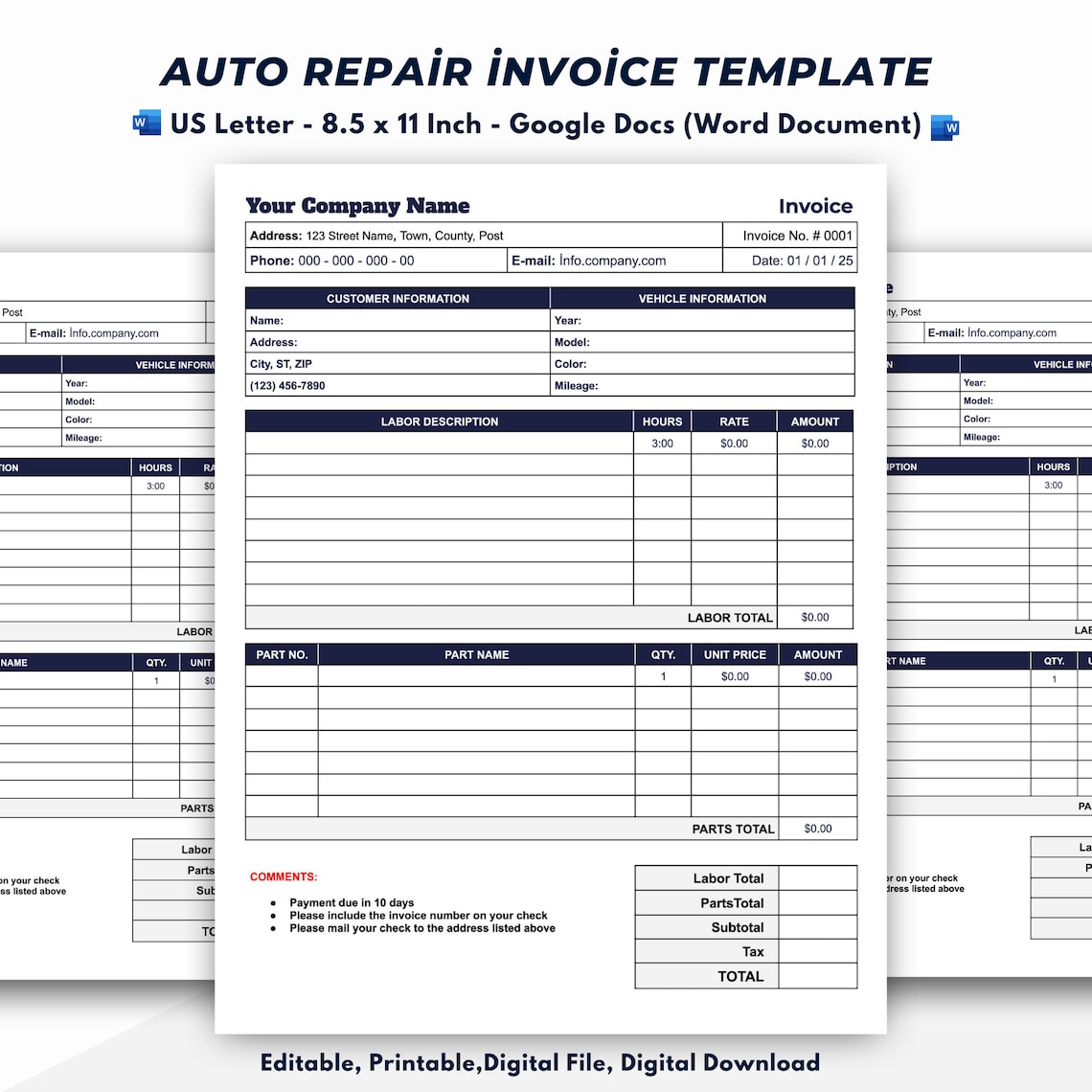 Auto Repair Invoice Template, Automotive Service Invoice Template - Etsy