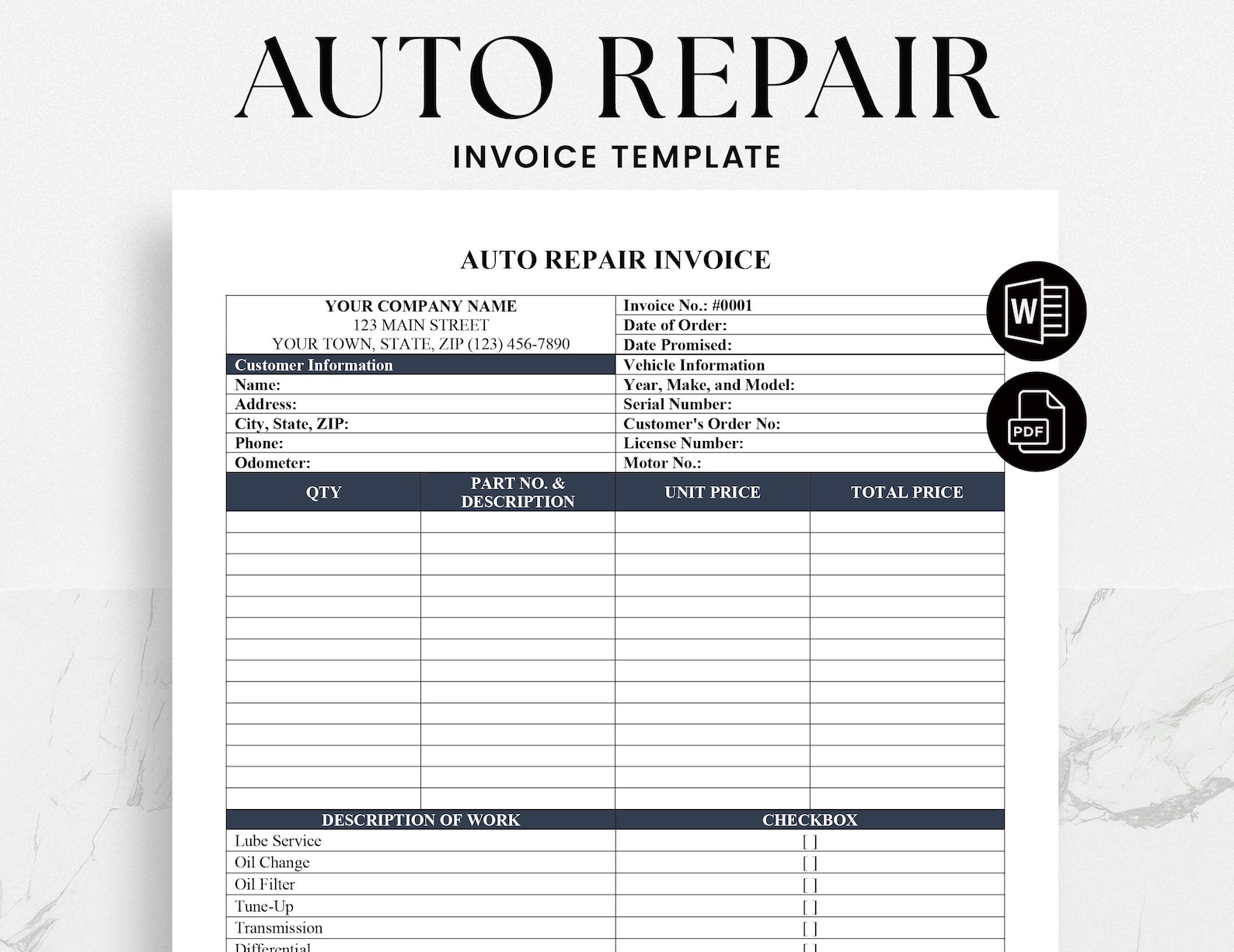 Auto Repair Invoice Template - PDF Templates | Jotform