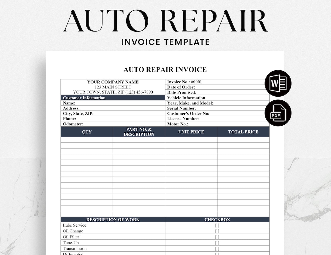 Auto repair invoice template – Artofit