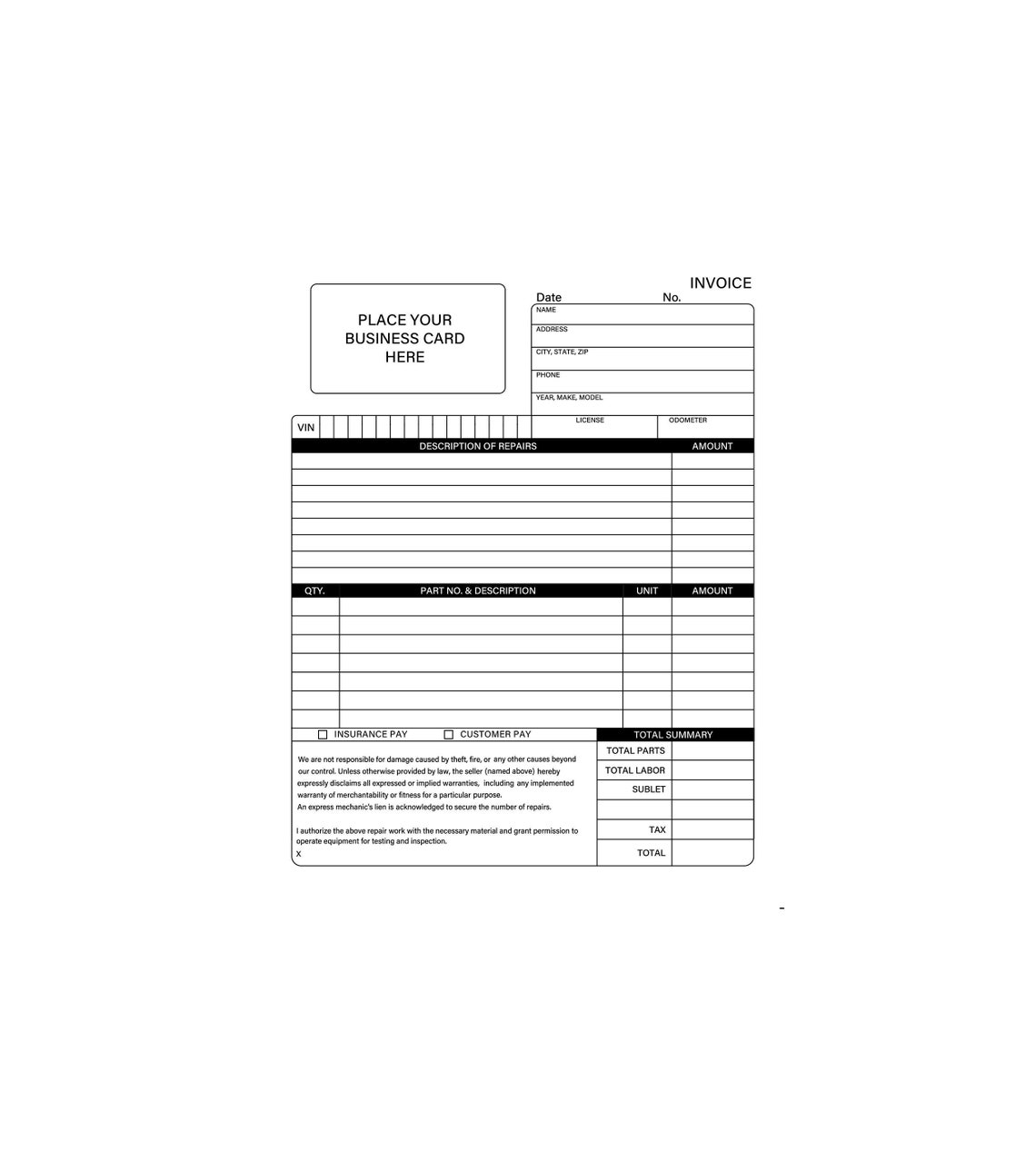 Downloadable Free Printable Auto Repair Invoice Template - Printable ...
