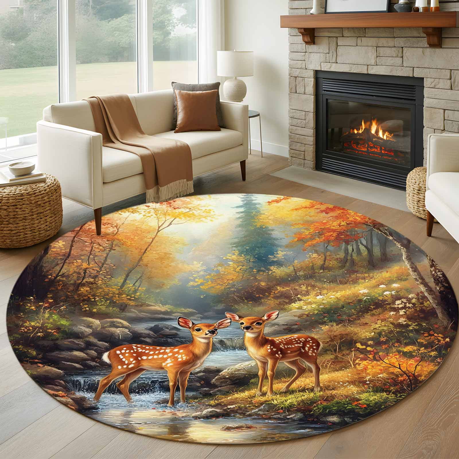Autumn Nature 8FT Round Area Rugs for Living Room Scenery Forest Deer ...