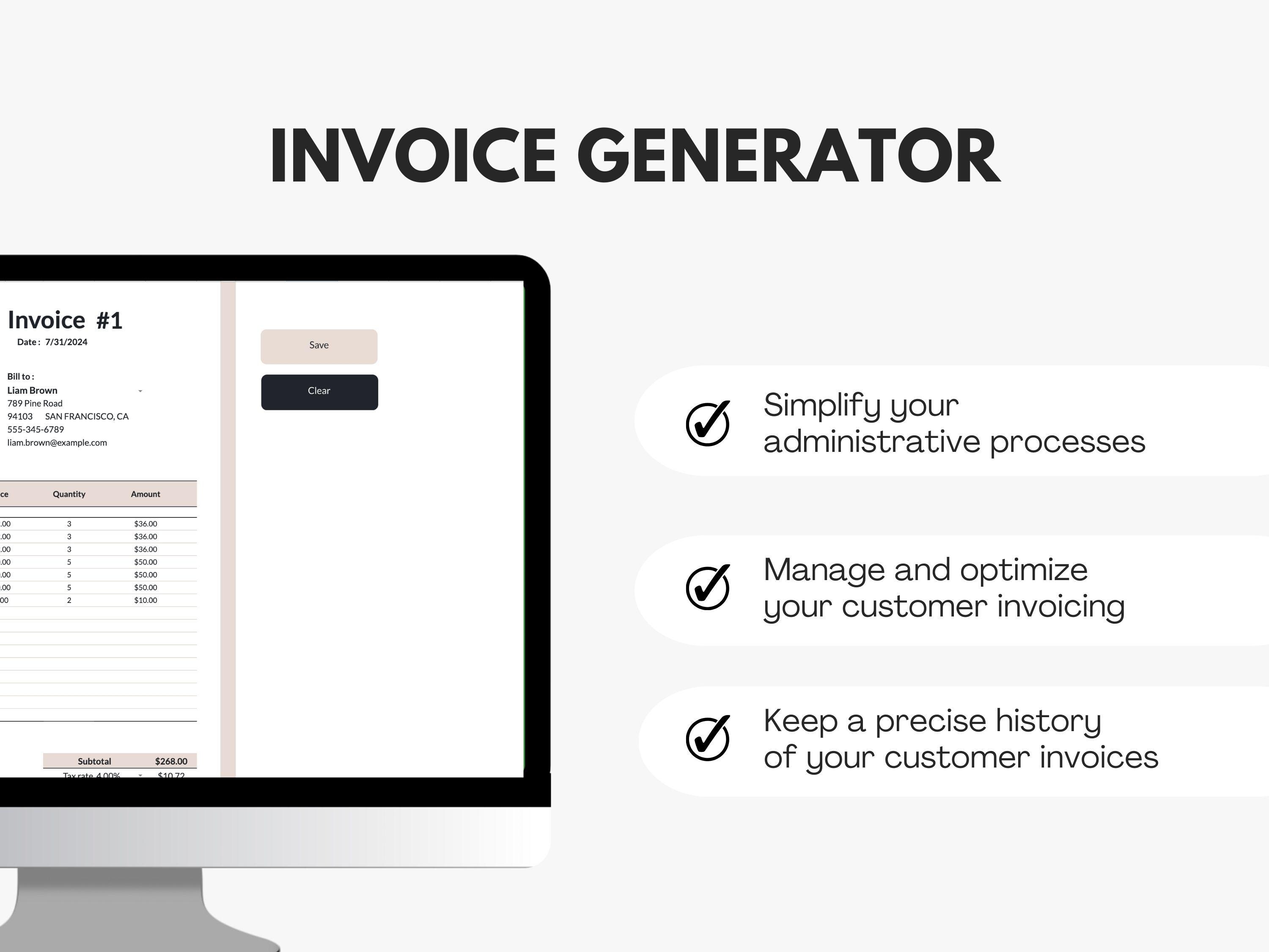 Invoice Generator Printable Automatic Spreadsheet Template Easy to use