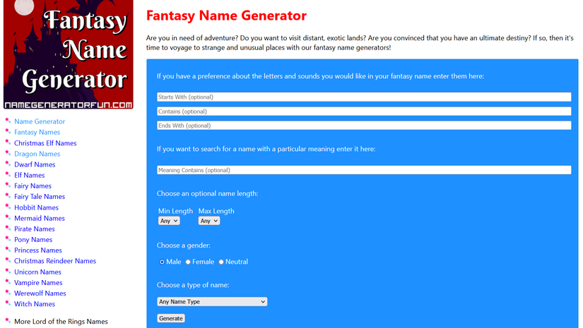 Fantasy Name Generator | Unique & Creative Fantasy Character Names 2025