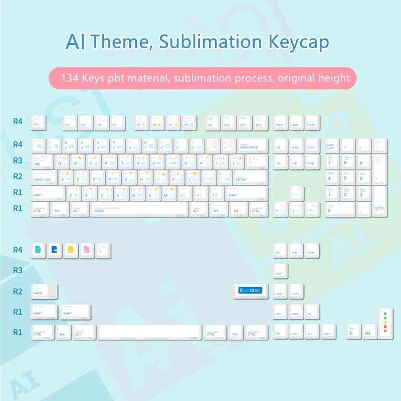 AI/PS/CAD Shortcut Theme 134 Keys Cherry Profile Keycaps Set for ...
