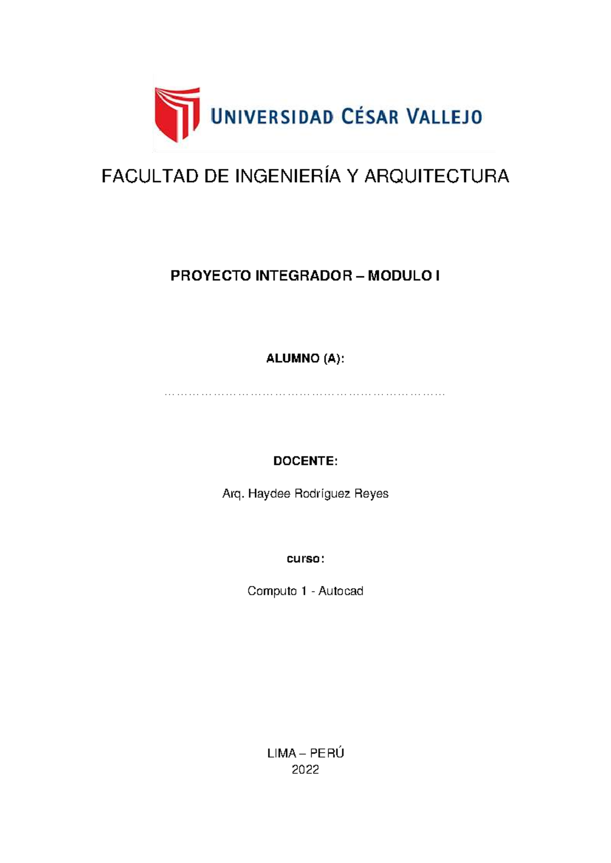 Computo 1 - Autocad: Proyecto Integrador Módulo I - Studocu
