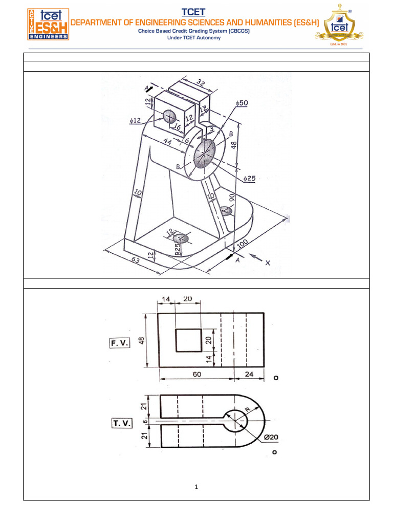CAD Question paper - Draw the orthographic projection of the object as ...