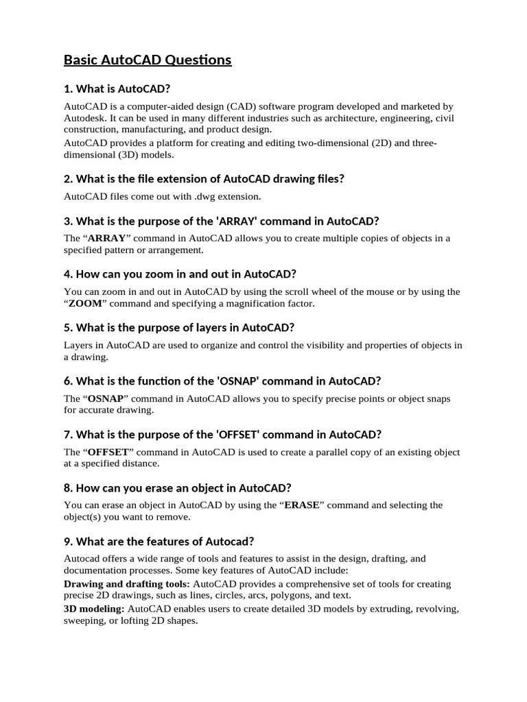 Basic AutoCAD Questions | PDF | Auto Cad | 3 D Computer Graphics