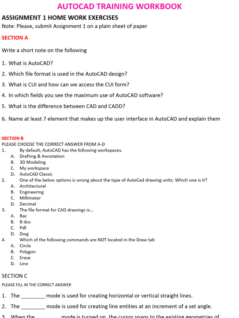 Autocad Training Workbook Questions PDF | PDF | Auto Cad | Computer ...