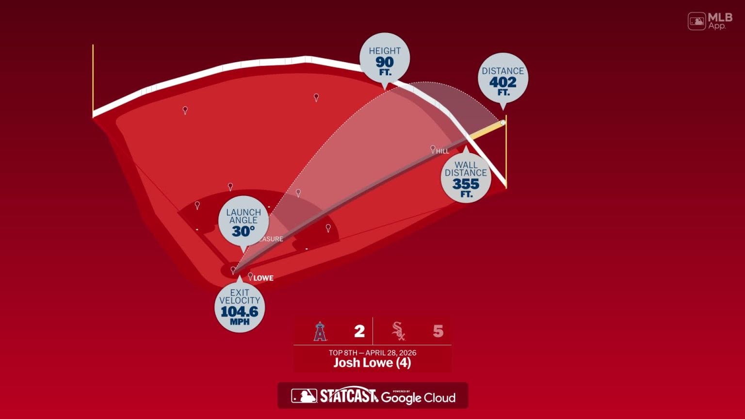 Measuring the stats on Josh Lowe's home run | 04/28/2026 | Los Angeles ...