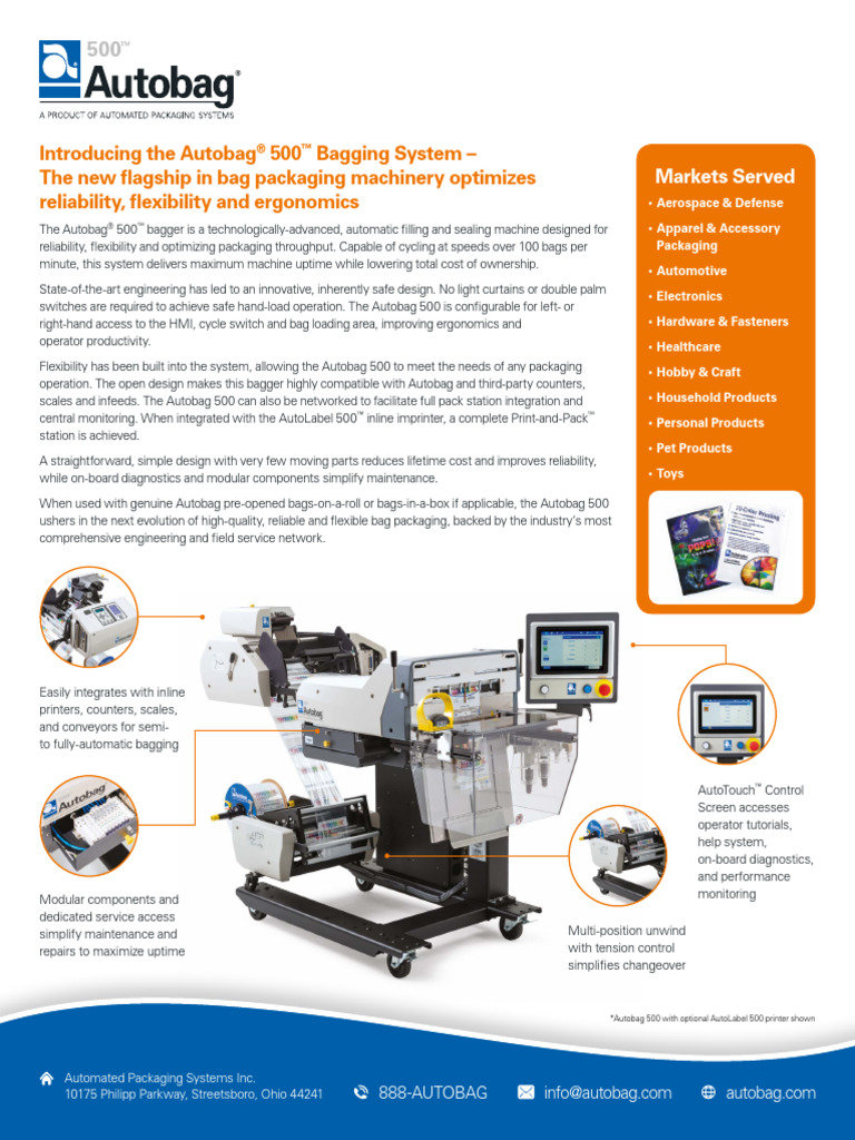 Autobag 500 Bagging System Datasheet | PDF | Packaging And Labeling ...