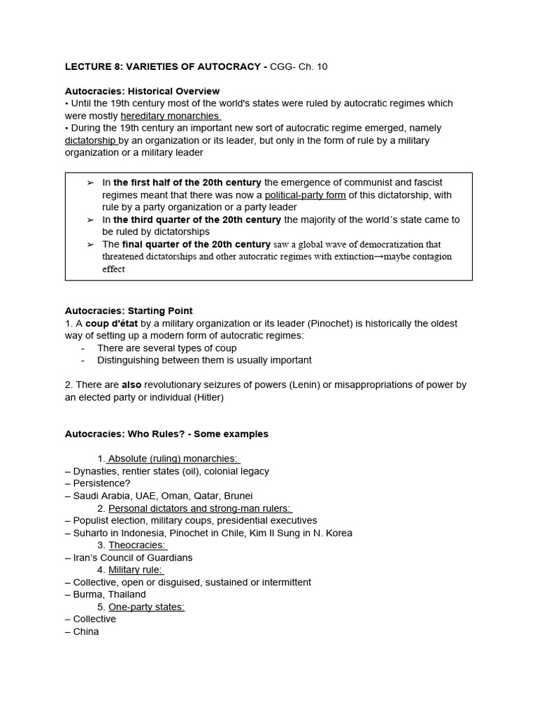 TOPIC 11: AUTOCRACY Lecture Notes and Key Features - Studocu