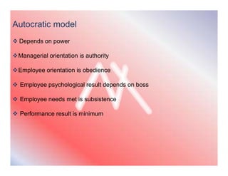 PPT - Organizational Behavior Models | Autocratic, Supportive ...