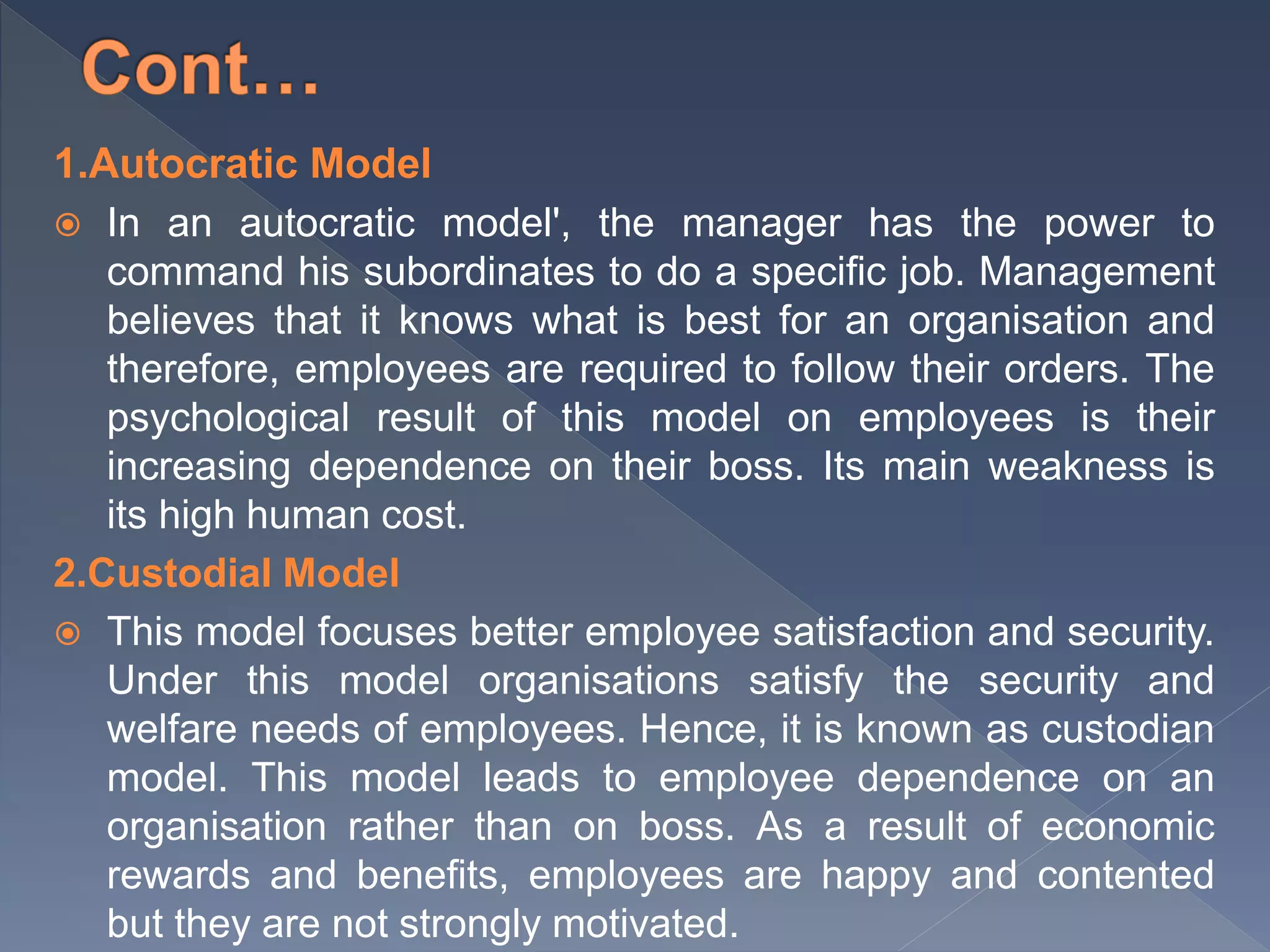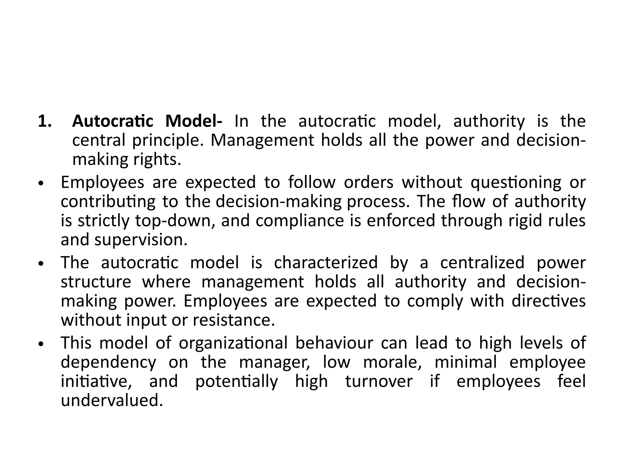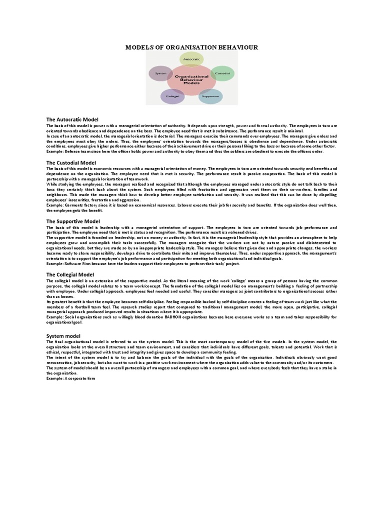 Organisational Behavior Models- Autocratic, Custodial, Supportive ...