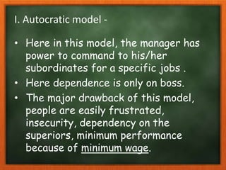 Organisation behaviour | autocratic and supportive model | bca sem 2 ...