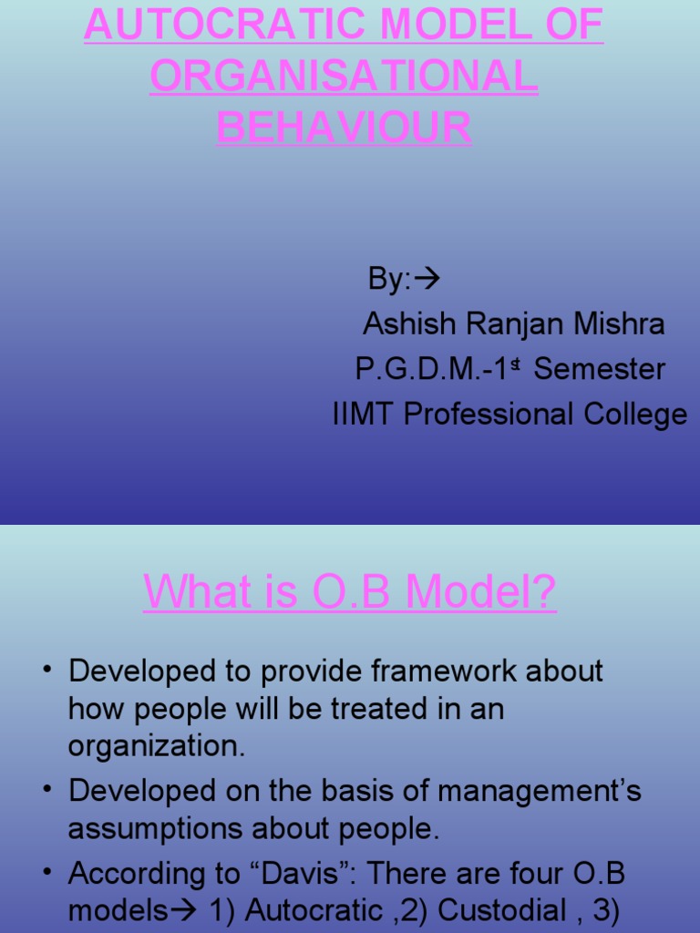 Autocratic Model of OB | Organisational Behavior | Simple | Bba / Bcom ...