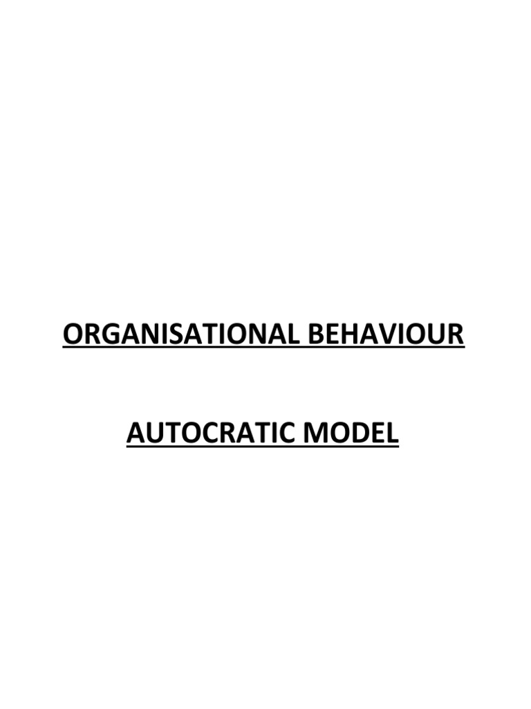 Models of Organisation Behaviour: The Autocratic Model | PDF ...