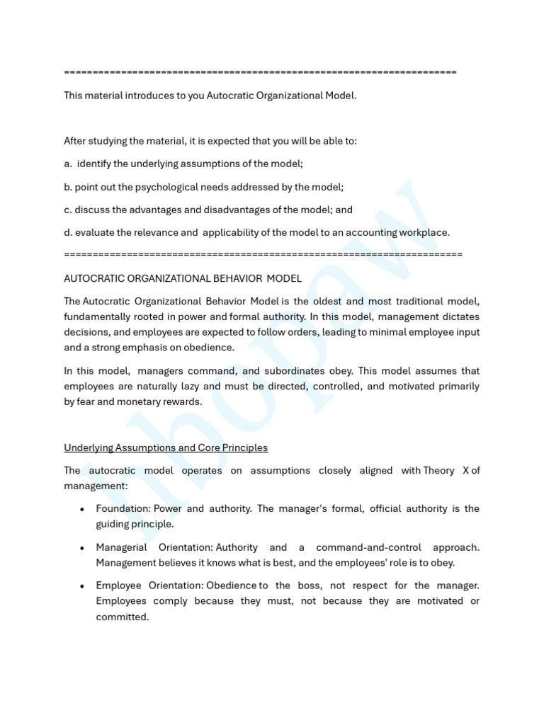 Autocratic Organizational Behavior Model | PDF | Career & Growth