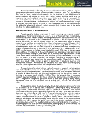 Autoethnography And Subjective Experience In Marketing And Consumer ...