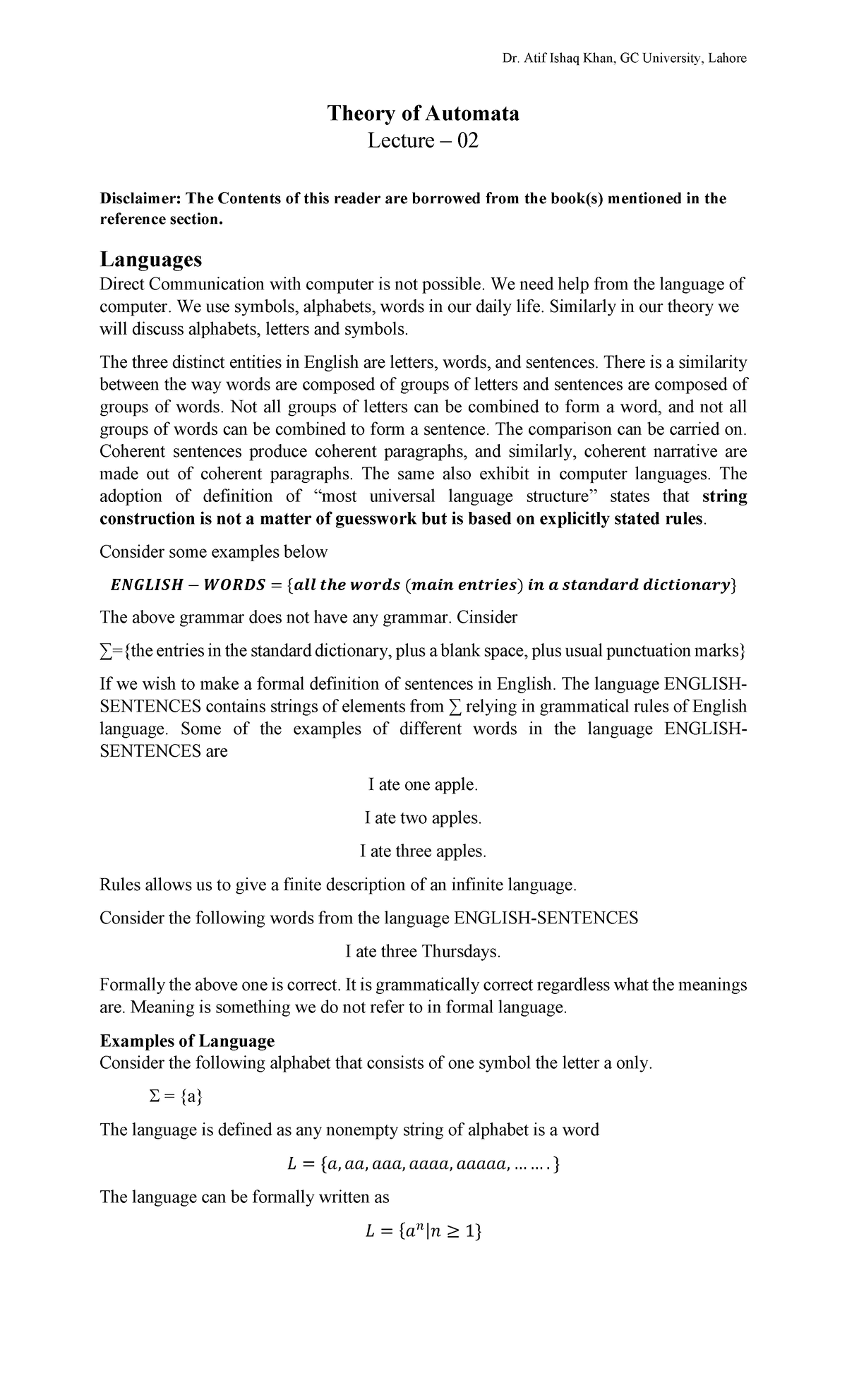 Theory of Automata - Lecture 01 | PDF | Grammar | Linguistics