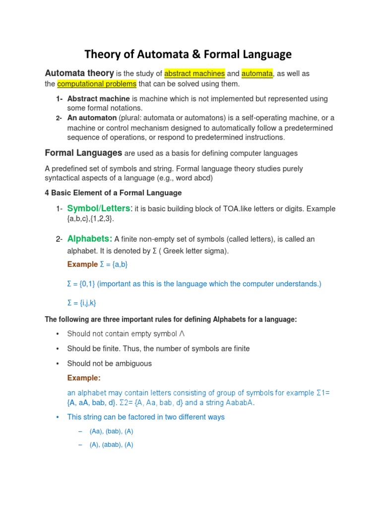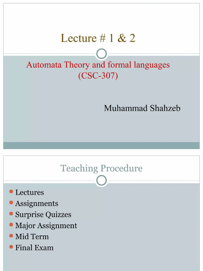 Theory of Automata (Cs-2208) : Lecture# 01 | PDF | Automata Theory ...