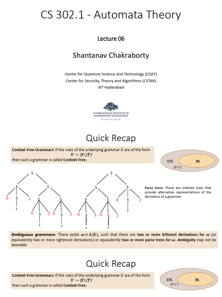 Automata Theory Lecture 12: Understanding Grammar & Ambiguity - Studocu