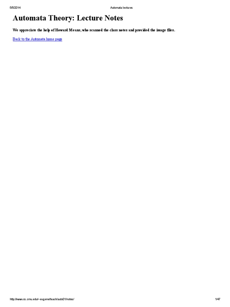 Automata Theory: Lecture Notes: Back To The Automata Home Page | PDF ...