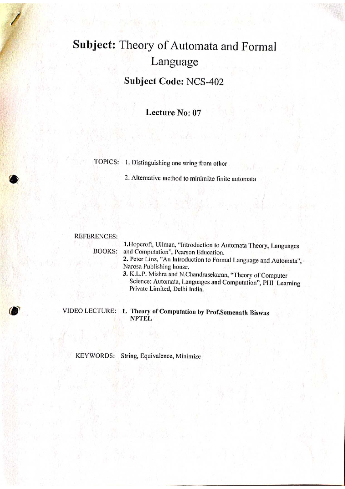 Lecture 07: Automata Theory & Formal Languages - Key Concepts ...