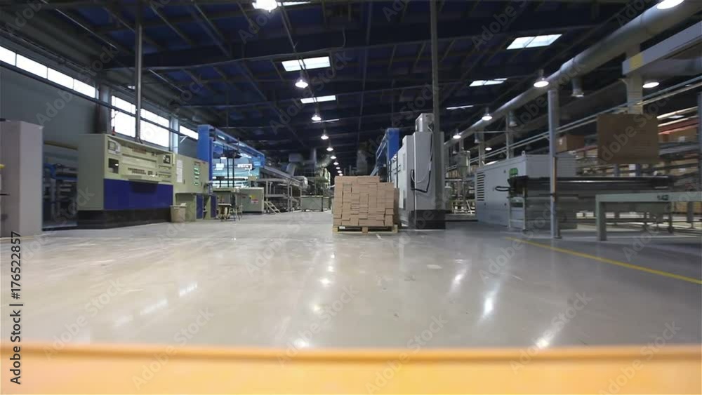 Automated manufacturing factory robotic arm loading metal sheet to ...