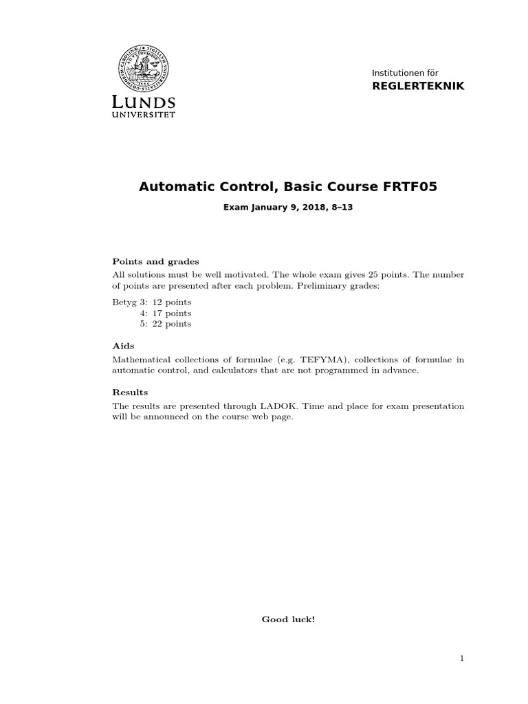 Automatic Control, Basic Course FRTF05: Reglerteknik | PDF | Control ...