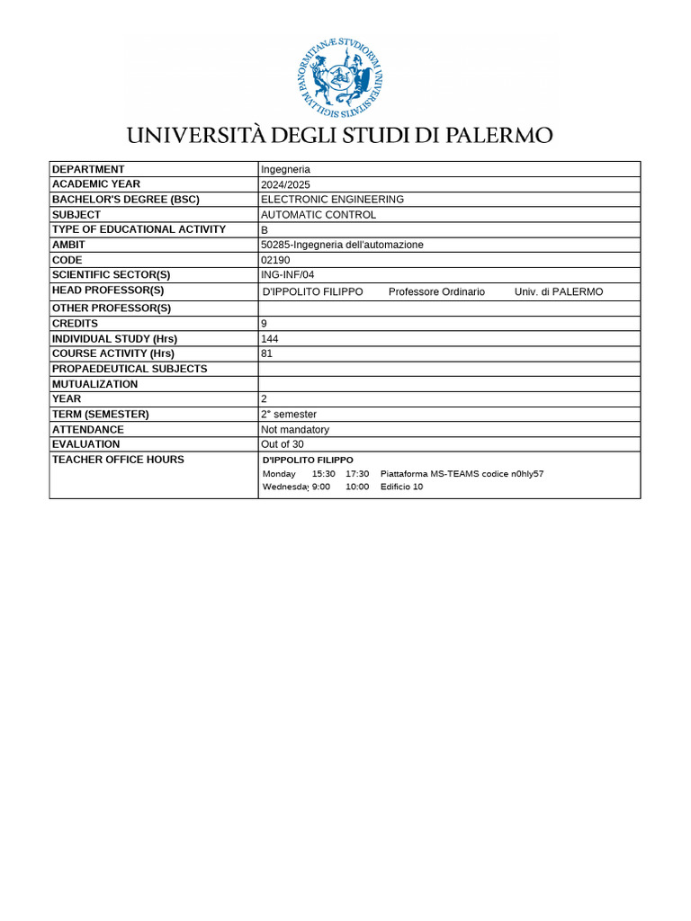 Automatic Control Course Overview | PDF | Control Theory | Knowledge