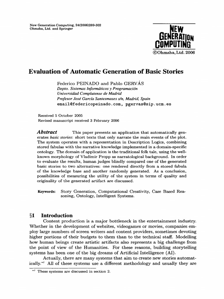 Evaluation of Automatic Generation of Basic Stories | PDF