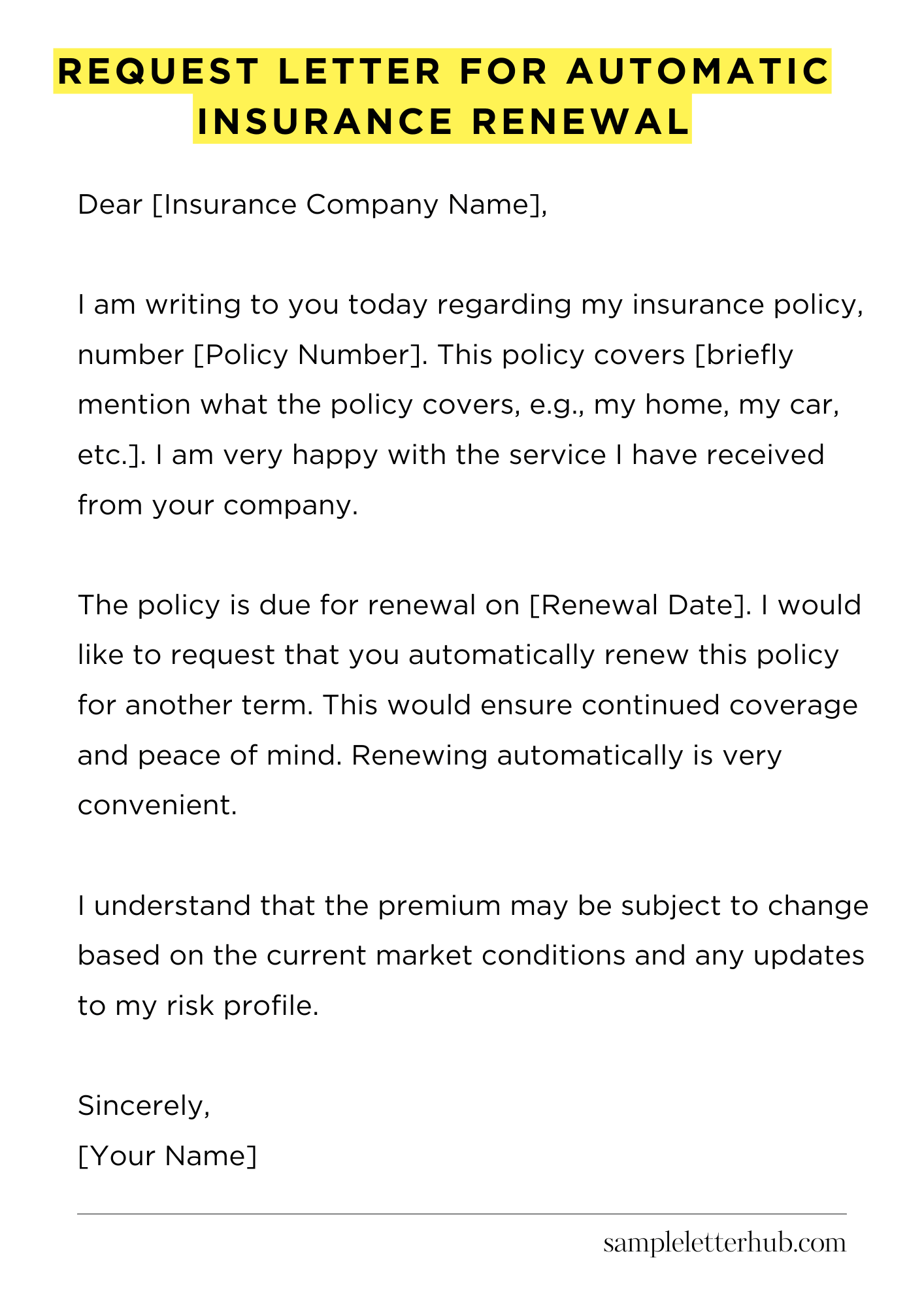 Request Letter for Automatic Insurance Renewal
