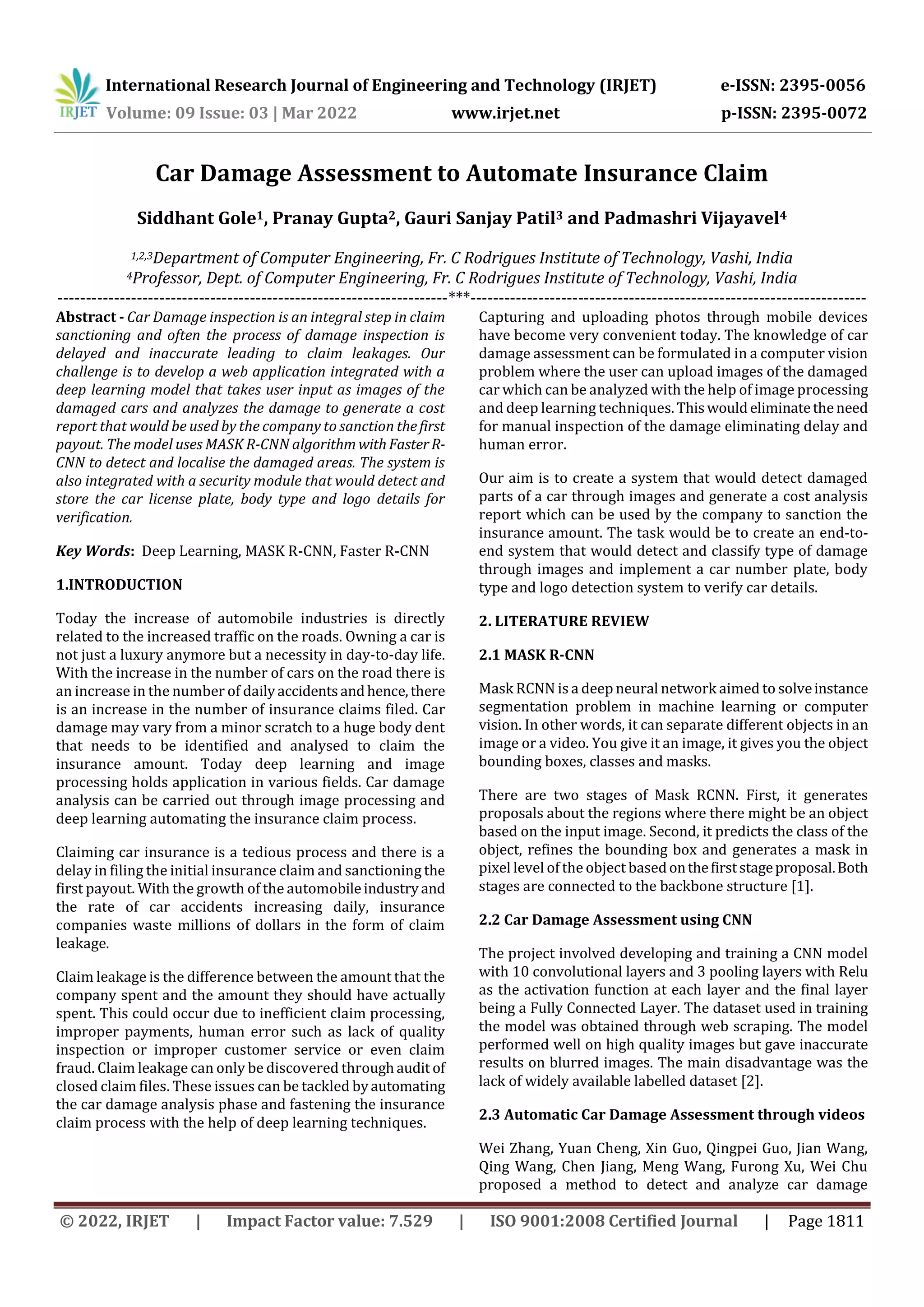 Car Damage Assessment to Automate Insurance Claim | PDF