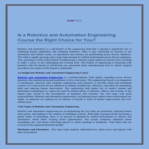 Is a Robotics and Automation Engineering Course the Right Choice for ...