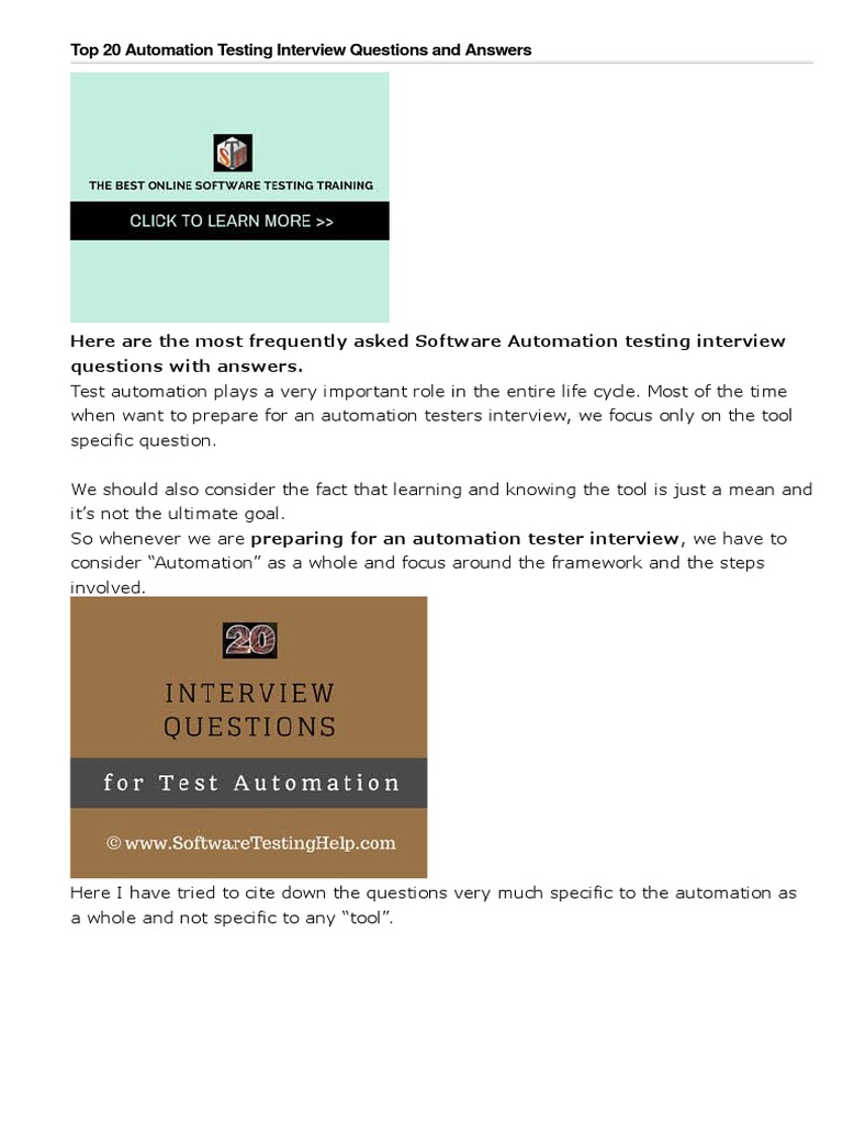 Top 20 Automation Testing Interview Questions and Answers | PDF ...