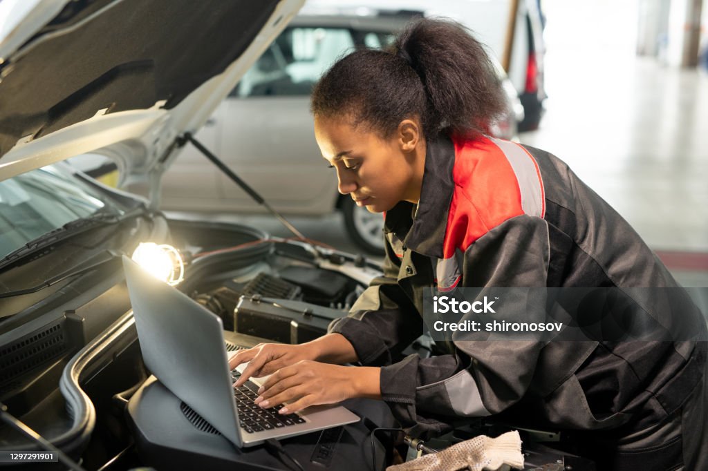 Premium Photo | Auto mechanic using laptop computer software for ...