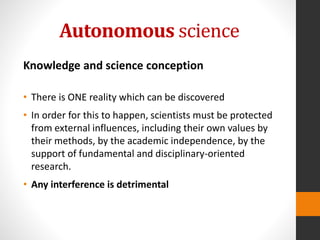 Autonomous science, science for and science with the public | PPTX
