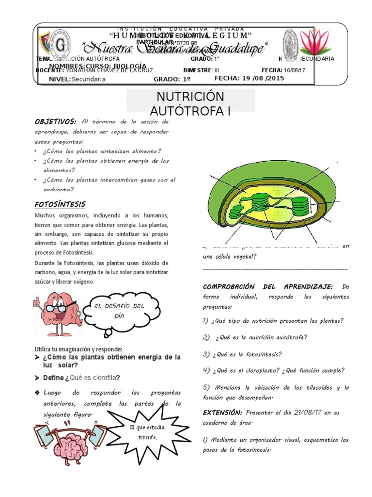 Ciencia, Tecnología y Ambiente en Santa Anita: Nutrición autótrofa