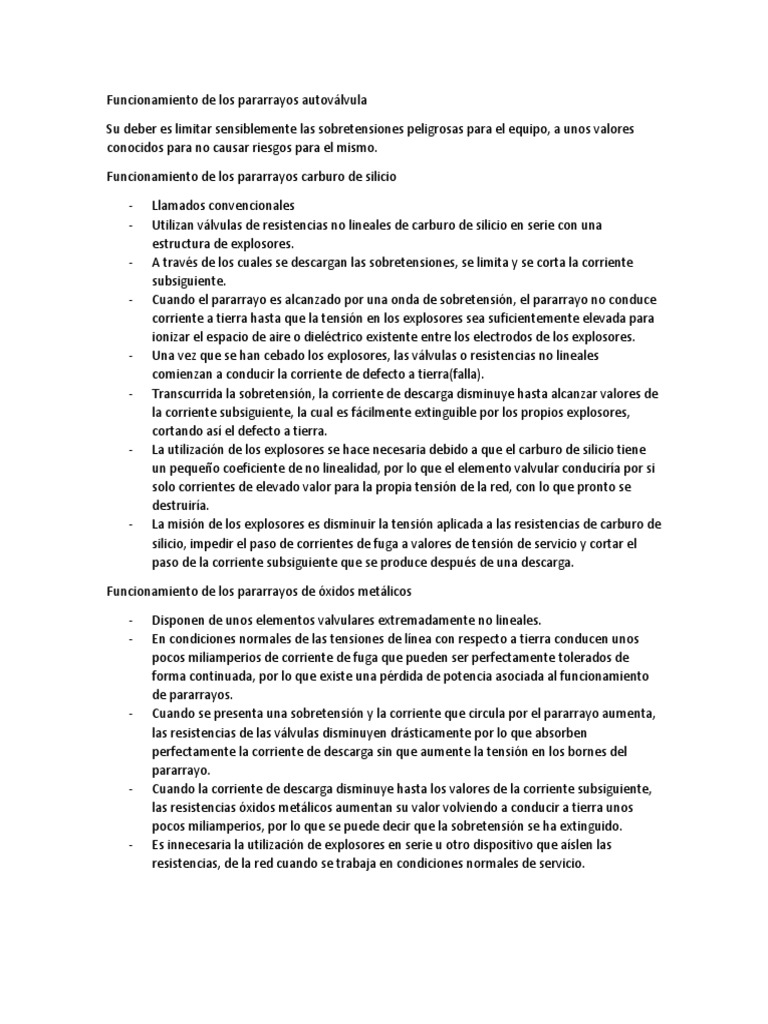 Pararrayos Autoválvulas: Funcionamiento y Características | PDF ...