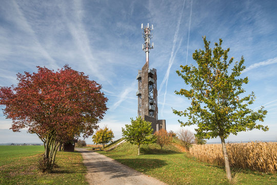 autumn panorama from Rozhledna Na Skalce lookout above Holcovice with ...