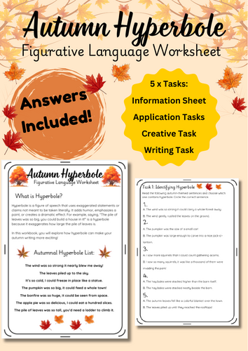 Autumn / Fall Hyperbole Figurative Language English Workbook | Teaching ...