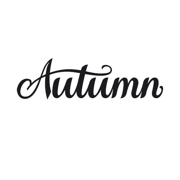 Autumn script hand lettering in black isolated on white background ...