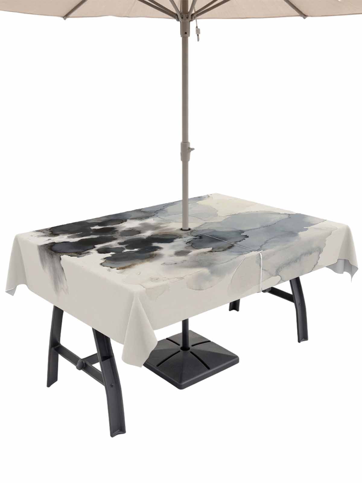 Abstract Rectangle Outdoor Tablecloth with Umbrella Hole Ink Painting ...