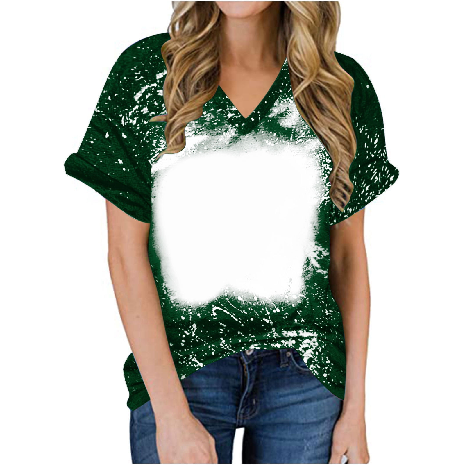 Bixock Women Tops Summer Short Sleeve V Neck Casual T Shirts Gradient ...