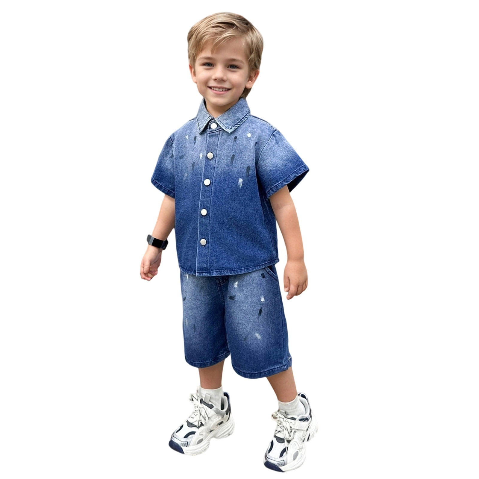 CONROSES Baby Boys Summer Outfit Set Gradient Color Short Sleeve Denim ...