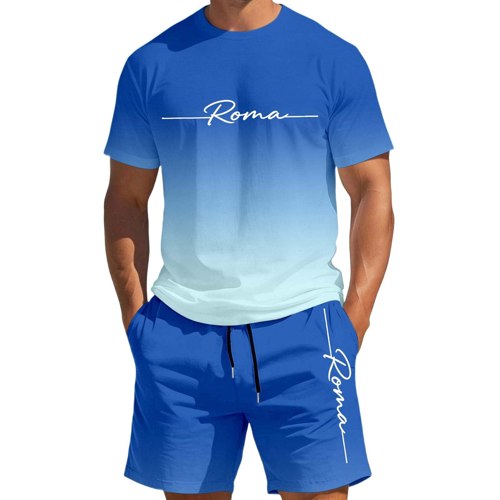 CONZONE Mens 2 Peice Outfits Gradient Color Letter Graphic Short Sleeve ...