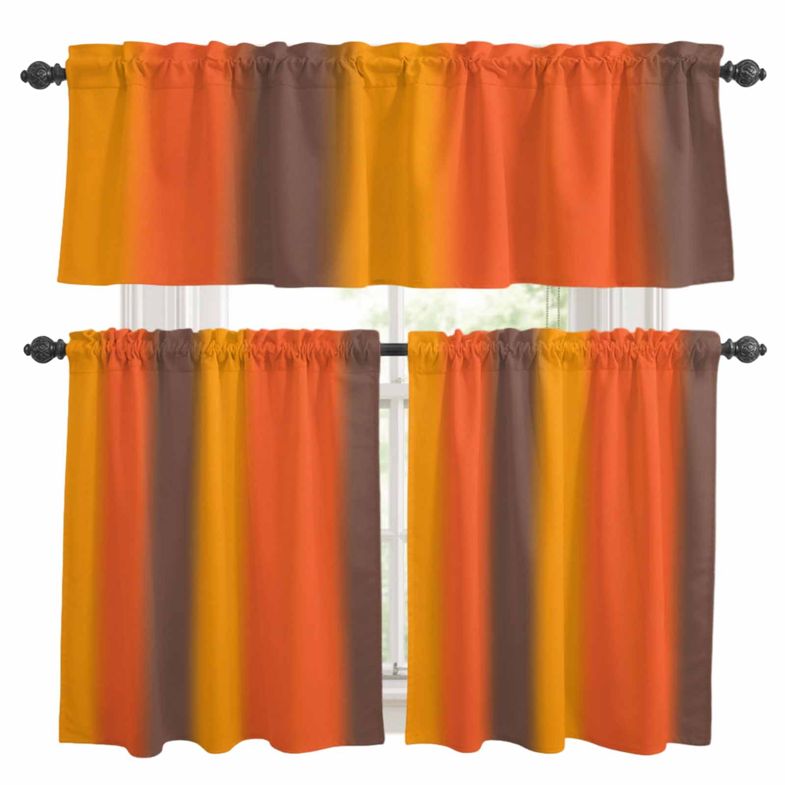 Color Striped Gradient Kitchen Curtains Valance and Tier Set Modern ...