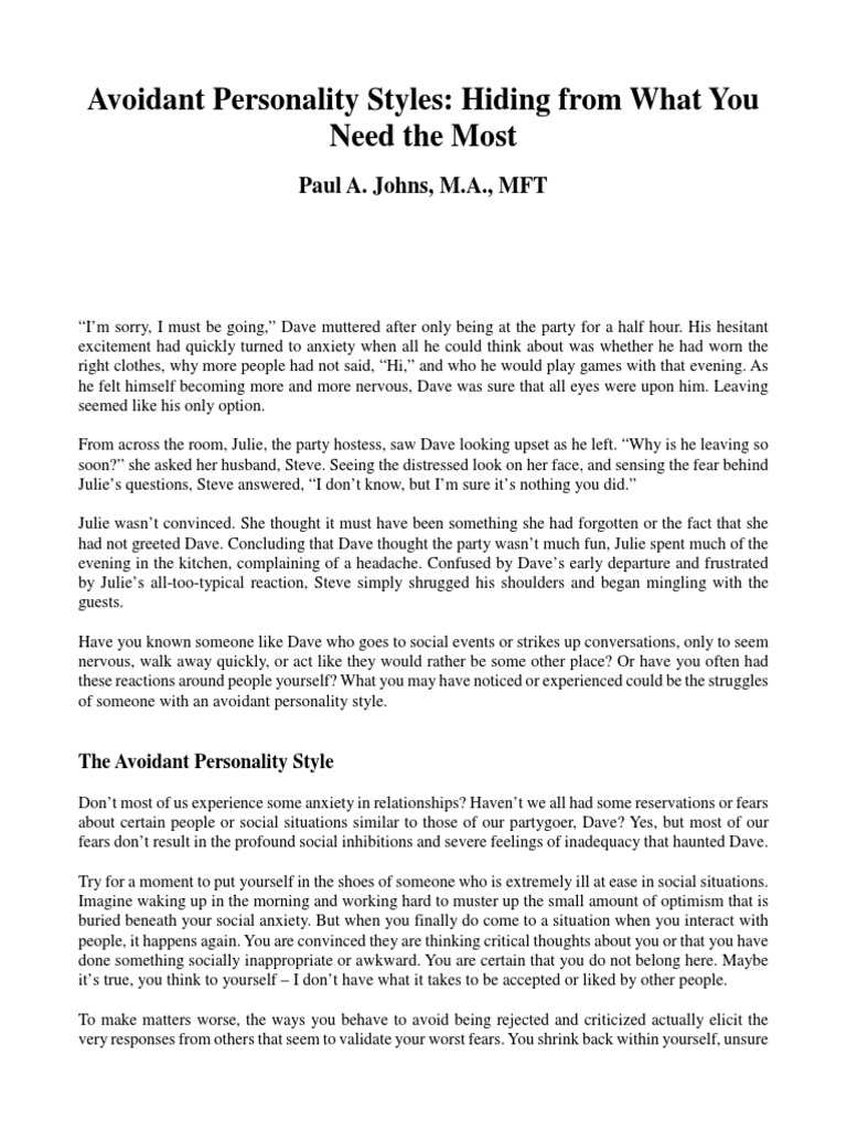 Avoidant Personality Styles - Hiding From What You Need The Most | PDF ...