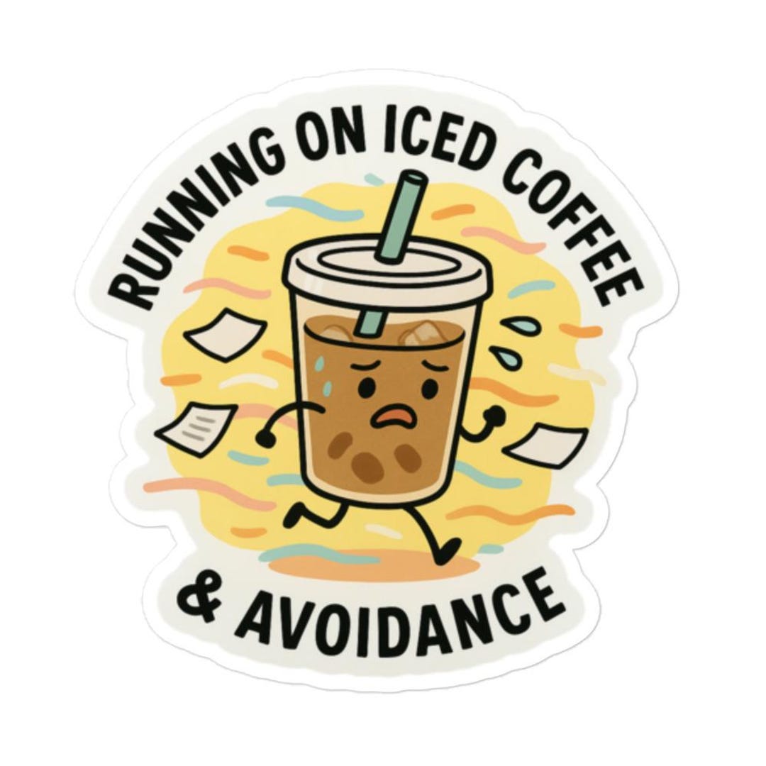 Running on Iced Coffee and Avoidance Sticker – Funny Caffeine Humor ...