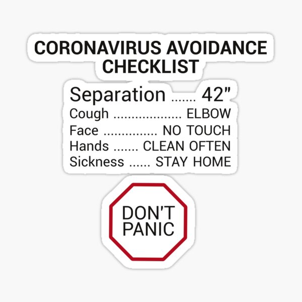 "Coronavirus Avoidance CHECKLIST - "Separation 42″ edition" Sticker by ...